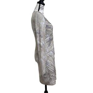 Torn by Ronny Kobo Women's Dress Pleated Patterned Long Sleeve Gray Beige Small