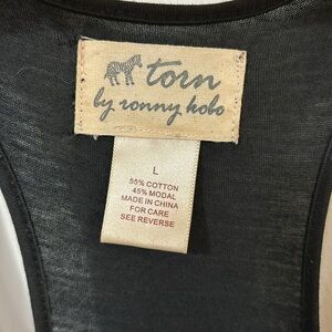 Torn by Ronny Kobo black tank top with copper-colored metallic squares size L