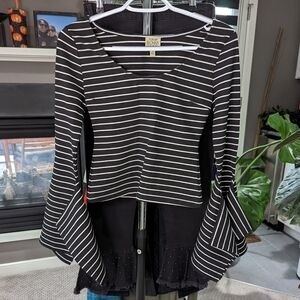 Torn by Ronny Kobo flare sleeve black & white striped top