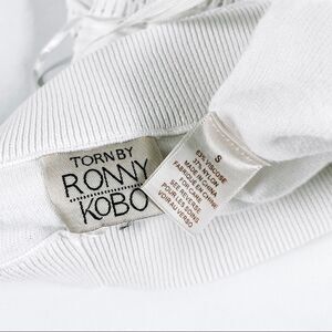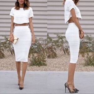 Torn by Ronny Kobo Classic Boho Pointelle Fitted Knit Stretchy White Midi Skirt Sz S