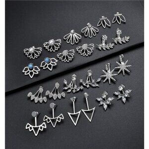*PRETTY SET--12 Pairs in One Set, Totally 12 Various Styles, Delicate Hollow Lotus Flower, Shiny Cubic Zirconia Leaf, Cute Starfish, Stylish Geometric Shape, Elegant Pearl Designs, Unique and Eye-catching,Try Different Pair Every Day