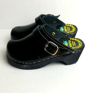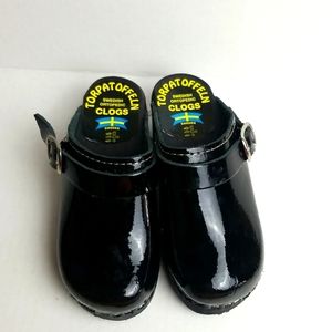 Torpatoffeln Black Patent Leather Clogs