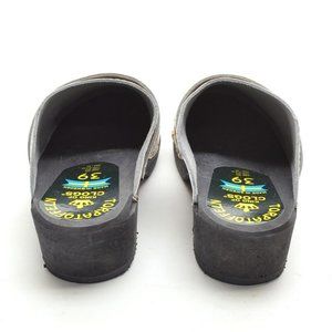 Torpatoffeln Lotta Leopard Print Swedish Wooden Clog 39