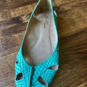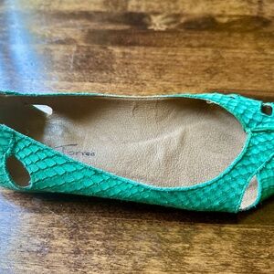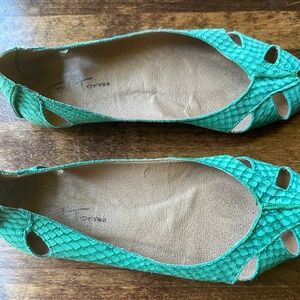 Unique leather Torres ballet flats; green with cut-outs. Made in Brazil. Excellent used condition.