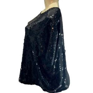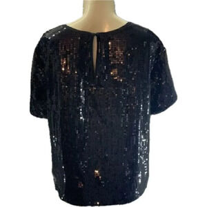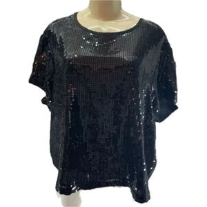 Torrid 0 Black Sequin Lined Crew Neck Keyhole Back Relaxed Fit Short Sleeve Top