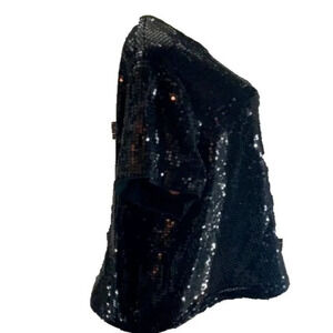 ITEM: Torrid 0 Black Sequin Lined Crew Neckline Keyhole Back Relaxed Fit Short Sleeve Crop Blouse