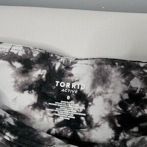 Elevate your activewear game with these Torrid 0 leggings. Featuring a trendy tie-dye pattern in black and white, these capri-style leggings are perfect for any athletic occasion. The stretchy material and compression area on the legs provide comfort and support for any workout.