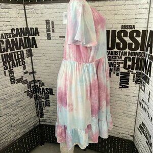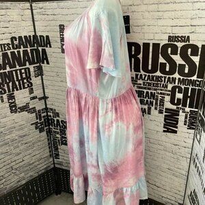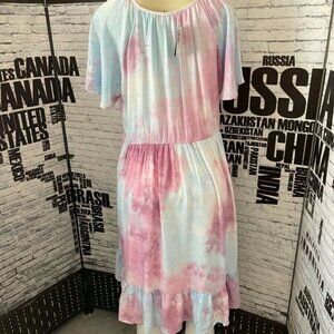 ITEM: Torrid 0 Mauve Tie-Dye Lined Tie Tassel Neck Ruffle Hem Short Sleeve Dress