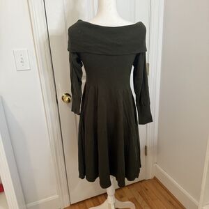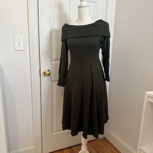 Torrid 0 Off-Shoulder Sweater Dress Olive Green Fit & Flare Knit Long Sleeve L12