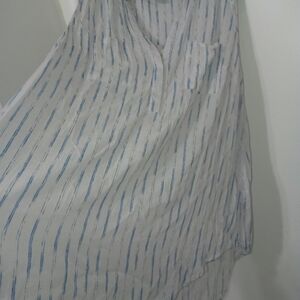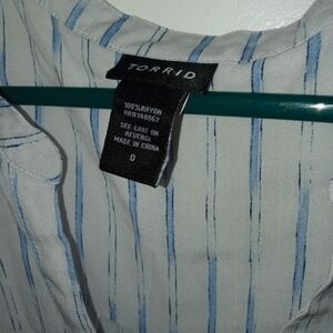 Torrid 0 Sleeveless Blue White Striped. Semi Sheer High Low Blouse w Pockets
