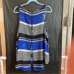 Eye-catching tank with vibrant blue and black stripes. Ideal for casual wear. Very good condition with some flaws(snags);see last 2 photos. Approximate measurements below: