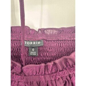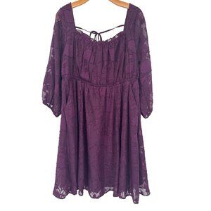 Torrid 0 Womens Purple Floral Textured Chiffon Dress 3/4 Sleeves Size Large