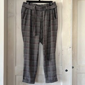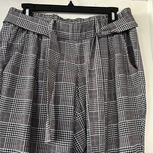 Torrid sz 00 black/white Herringbone plaid with a pop of pink stripe. Perfect for work or play, elastic waist with self tie, cute cuffed legs. EUC, see pics for approx measurements!