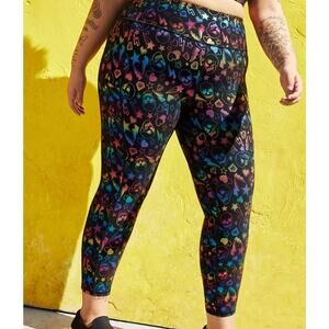Torrid 1 (1X 14/16) Black Rainbow Skull Tattoo Crop Performance Active Leggings