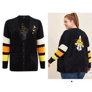 Torrid 1 (1X 14/16) Disney Minnie Mouse Candy Corn Witch Halloween Cardigan New