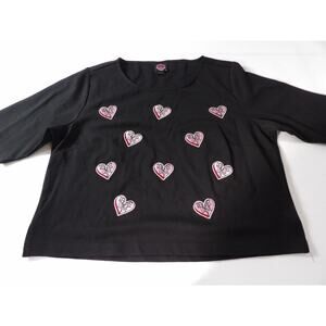 Torrid 1 1X Rebel Wilson Top Patchwork Black Hearts Short Sleeve Love