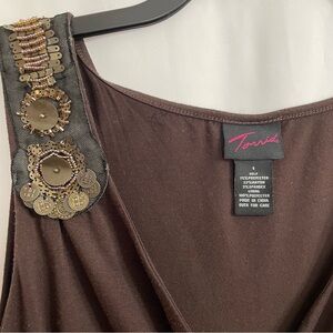 Torrid 1 Brown Ruched Wrap Tank Top Embellished Shoulder Party Festival