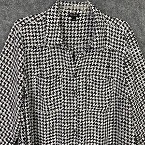 Torrid 1 Button Front Blouse Women 1X Silky Houndstooth B&w Pattern Long Sleeve