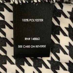 This beautiful Torrid blouse features a silky houndstooth black and white pattern that is sure to catch everyone's eye. With its collared neckline and long sleeves, this blouse is perfect for any occasion. The button front design adds a touch of sophistication to this basic style blouse. It comes in a plus size 1X, making it a perfect fit for any woman looking for a stylish and comfortable top. The blouse is black & white making it a versatile piece that can be paired with many different outfits.