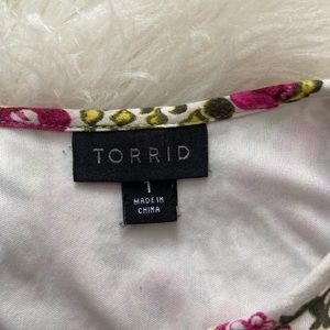 Lovely Torrid flowered, spring dress with 3/4 sleeves. Only worn once. Peek-a-boo neckline. VGC