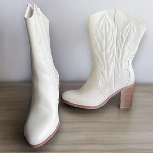 Torrid 12WW Wide Width Western Cowboy 3.5" Heel Mid Shaft Ivory Boots Booties