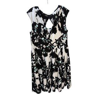 Torrid 1X Floral Sleeveless Fit & Flare Dress With Keyhole Back Black & White Pa