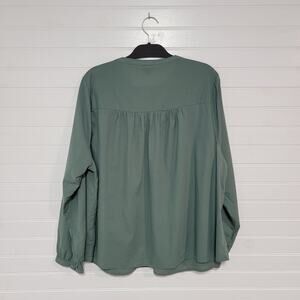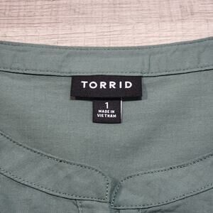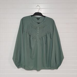 Torrid 1X Henley Blouse Top Embroidery Frock Green Cottage Preppy Peasant Cotton