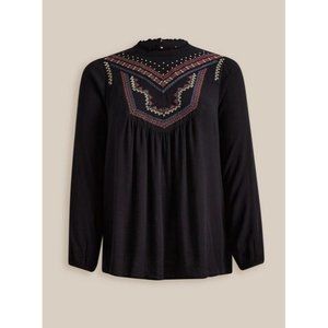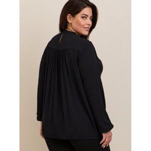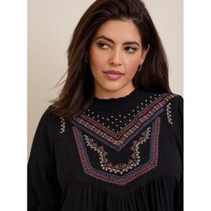 Torrid 1X NWT Washable Black Crinkle Gauze Relaxed Embroidered Blouse Boho Hippy