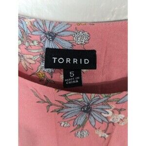This beautiful Torrid dress is perfect for any casual occasion. The dress features a gorgeous pink floral pattern that is perfect for the spring season. The V-neckline and short sleeves add a touch of elegance to the dress, while the pullover closure ensures a comfortable fit.