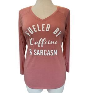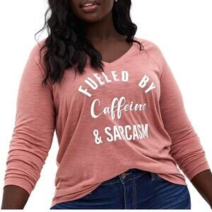 Torrid 2 (2X 18/20) Fueled by Caffeine & Sarcasm Vneck Long Sleeve Tee T Shirt