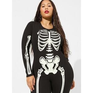 Torrid 2 (2X 18/20) Skeleton Glow In the Dark Halloween Costume Cosplay Bodysuit