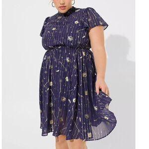 Torrid 2 (2X) Harry Potter Wand Symbols Chiffon Mock Neck Navy Blue Dress New