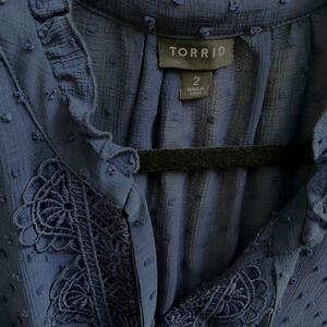 Torrid 2( 2X) Woman's Blue Long Sleeve Blouse Button Front rn# 148862