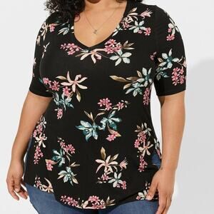 Torrid 2 (2x 18/20) Super Soft Orchids Floral Side Slit Favorite Tunic T Shirt