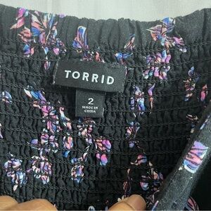 Torrid 2 Black Floral V-Neck Sundress Smocked Midi Summer