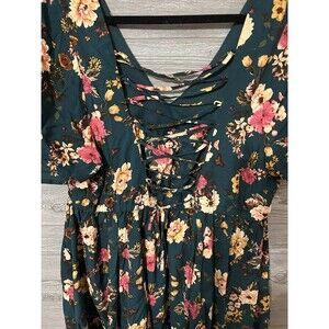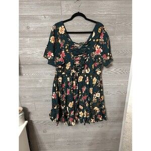 Torrid 2 Dress Real Green Floral Challis Tiered Skater Corset Back Plus Strappy