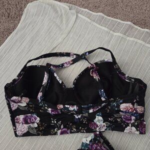 Torrid 2 Underwire Push-up Cut and Sew Bikini Top Black Purple Floral