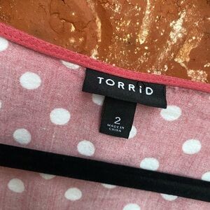 Torrid 2 Womens 2X Pink Polka Dot Vneck Tie Back Baby Doll Blouse