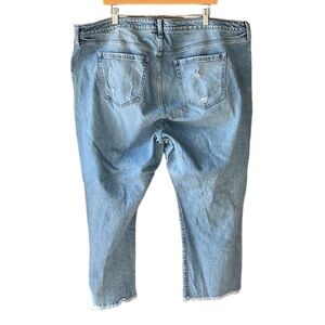 Torrid 22 Short Jeans Light Wash Knee Slit Exposed Button Fly Distressed Crop