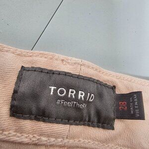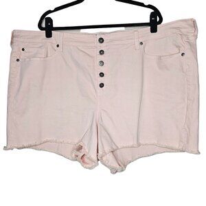 Torrid 28 Light Pink Cut Off Denim Shorts Stretch Button Fly Raw Hem 4.5"