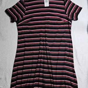 Torrid 2X Black & Multi Stripe Rib Mock Neck Trapeze Dress Pink & Red NEW