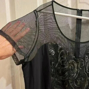Torrid 2X Black Sequined Mesh Sheer Babydoll Peplum Sweetheart Top
