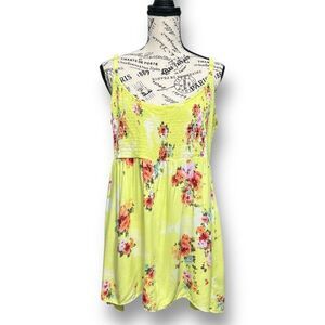 Torrid 2X Lime Green Floral Tank Top Smocked Babydoll Cami Boho Challis Summer