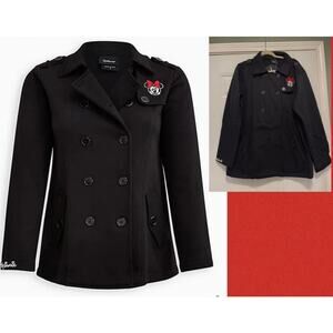 Torrid 3 (3X 22/24) New Minnie Mouse Embroidered Black Fleece Knit Peacoat Coat