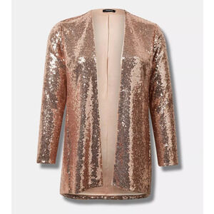 Torrid 3 (3X 22/24) New Rose Gold Sequin Longline Party Blazer Jacket Holiday