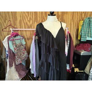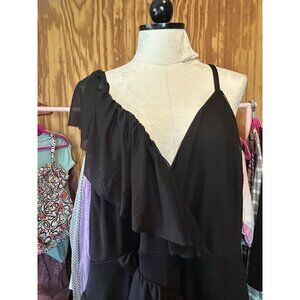 This listing is for Torrid 3 (3X) Black Midi Mesh Ruffle Surplice Dress Cocktail Party