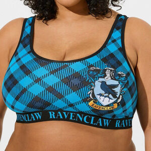 Torrid 3 (3X) Harry Potter Blue Plaid Ravenclaw Crest Wireless Bralette Bra New