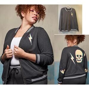 Torrid 3 (3X) Lovesick Skull Punk Gothic Lightning Bolt Fleece Bomber Jacket