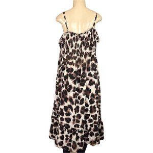 Torrid +3 Chiffon Brown Animal Print Shirred Bodice Split Front Strappy Midi Top
