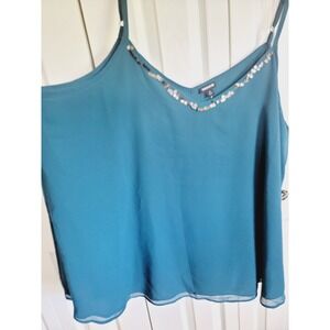 Torrid 3 Deep Teal Chiffon Sequin Cami Shirt Top Sleeveless Size XL NWT RV $45